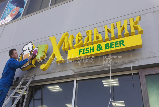 - замена ламповых устройств и световых элементов на рекламных вывесках;