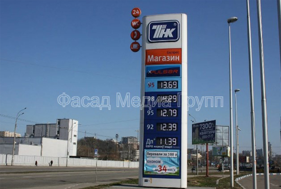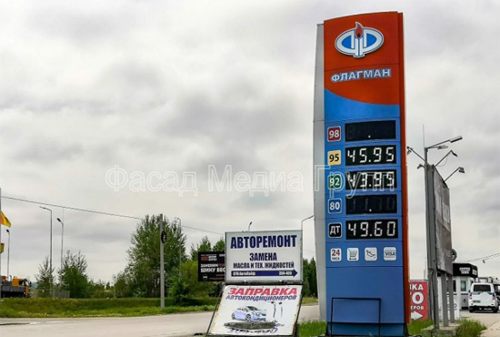 Рекламно-производственная компания "Фасад Медиа Групп" занимается изготовлением стел для АЗС «под ключ»: