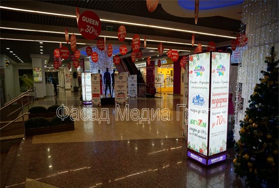 Заходя в магазин или торговый центр, люди сталкиваются с рекламными конструкциями различных форматов. Частота контактов потенциальных клиентов с рекламой, размещенной на тумбах и пилларсах, находится на очень высоком уровне. По статистике, с данной рекламной конструкцией, установленной на фасаде здания, люди могут контактировать до нескольких тысяч раз в сутки.