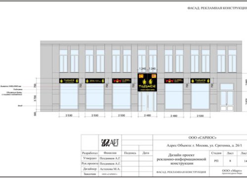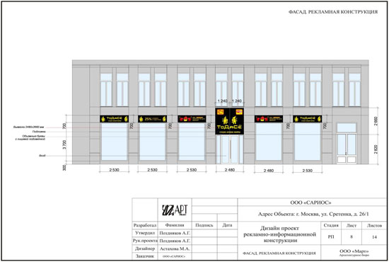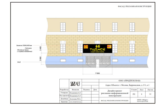 Процесс проектирования вывески, если она является рекламной или художественной, должен заканчиваться получением разрешения на изготовление и установку рекламной конструкции. На данном этапе технический проект направляется в государственные органы, чтобы получить разрешение на изготовление и установку рекламной конструкции по заявленным характеристикам и на указанном в техническом проекте месте.