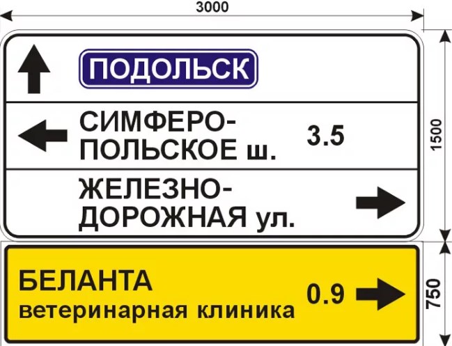 Дорожные указатели или знаки индивидуального проектирования обладают идеальными размерами, способствующими их высокой заметности для потенциальных клиентов. Размеры дорожных указателей могут быть разными, в связи с чем у рекламодателя есть возможность подобрать тот знак, который соответствует целям, задачам рекламной кампании, а также стоимость которого не выходит за рамки утвержденного рекламного бюджета.