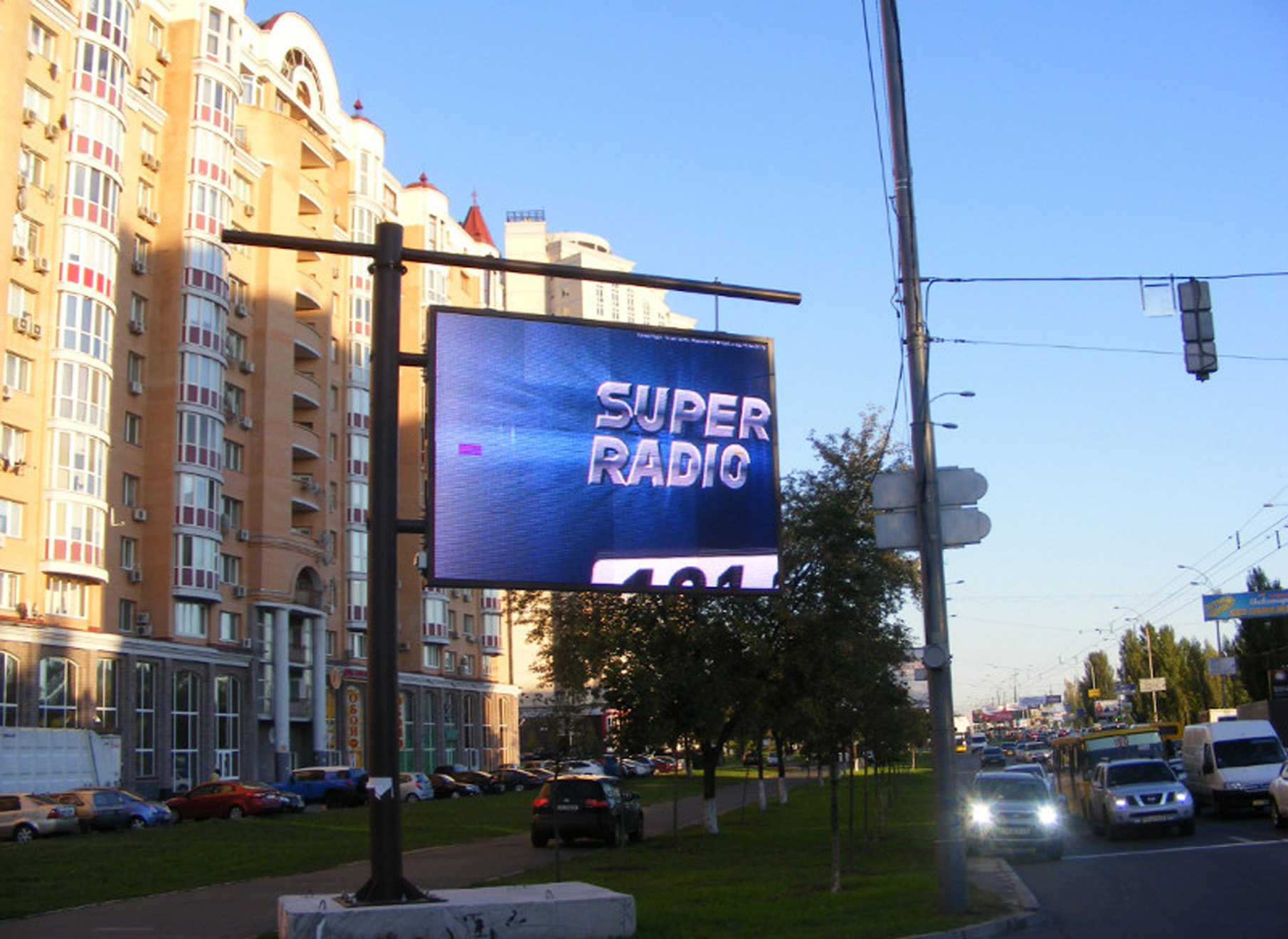 Рекламное поле видеоэкрана состоит из светодиодных панелей, которые могут передавать более 4 млрд цветов и оттенков. Данное обстоятельство обеспечивает яркость изображения и его хорошую видимость как в ночное, так и в дневное время. Дополнительно необходимо отметить, что яркость экрана автоматически регулируется в зависимости от погодных условий, что существенно улучшает видимость рекламы даже в самый яркий солнечный день. К слову, яркость видеоэкрана в солнечный день доходит до 100%. В ночное время этот показатель составляет от 10 до 35% (в соответствии с требованием ФЗ «О рекламе»).