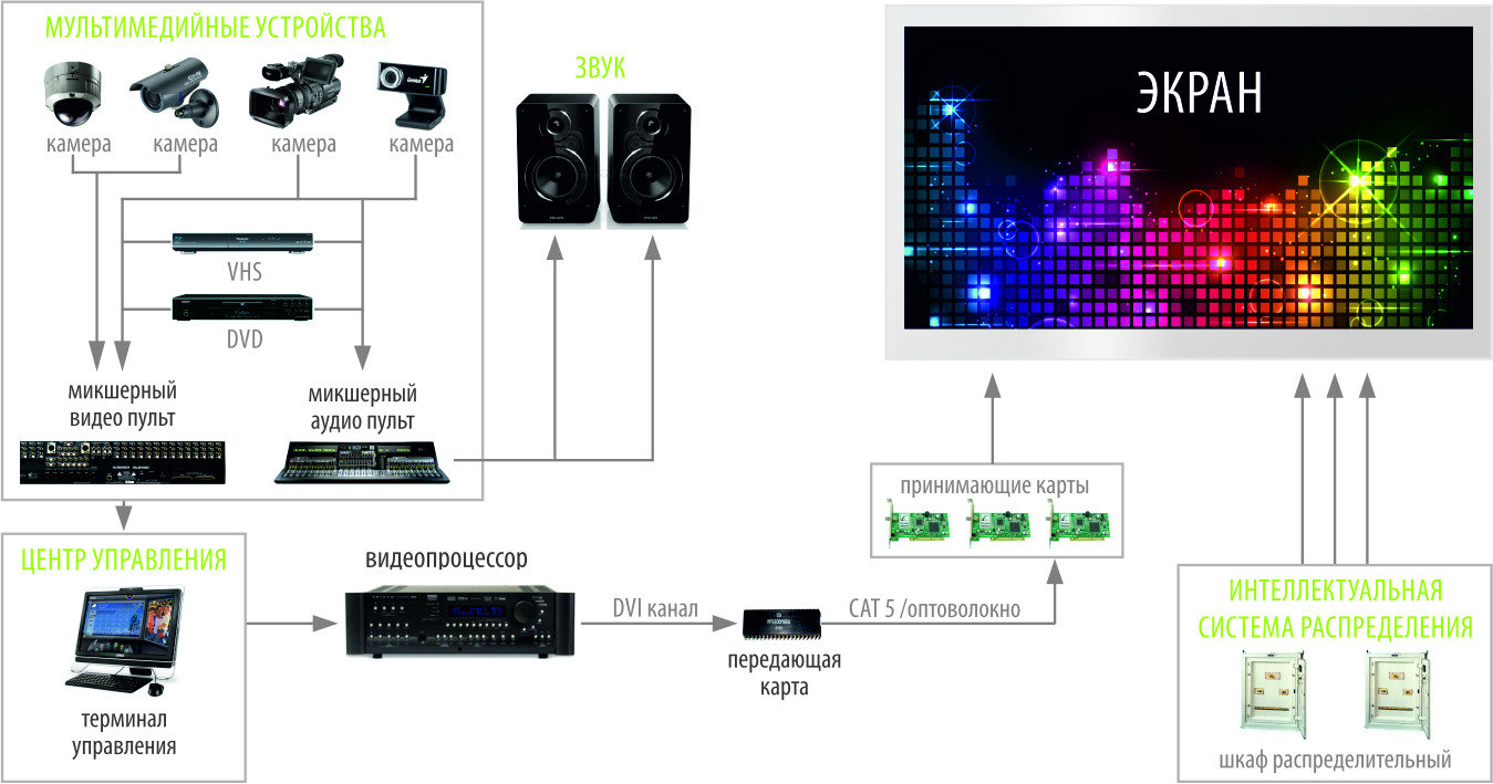 Принцип работы видеоэкрана показан ниже: