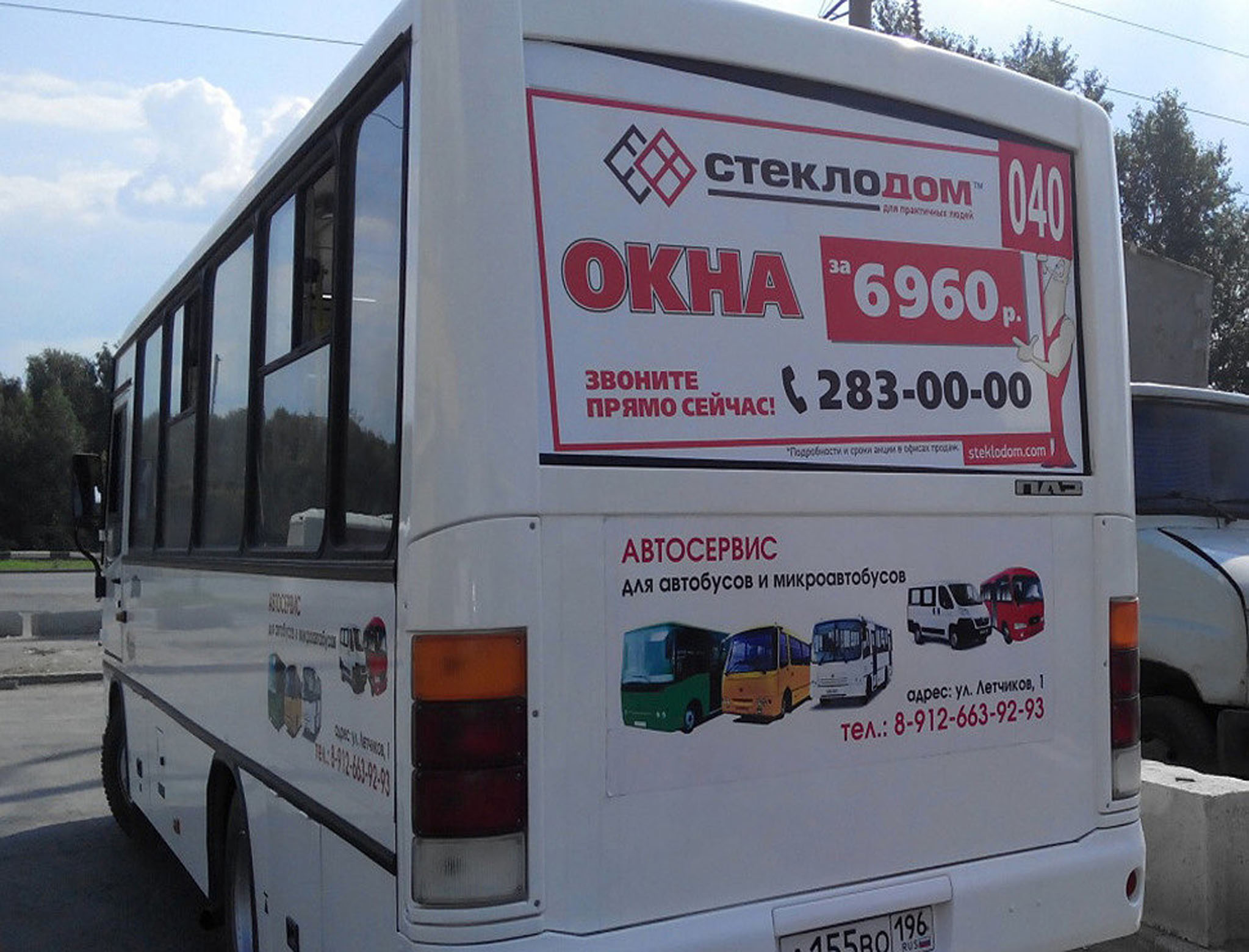 Как обеспечить массовый охват населения, размещая рекламу на транспорте, если денег на рекламу выделено не так много? В этом случае мы советуем использовать внутрисалонные форматы, а также брендирование заднего стекла или заднего борта транспортного средства. Указанные форматы являются относительно недорогими и по карману многим рекламодателям. Уверяем, что размещение рекламы на транспорте может себе позволить даже организация с небольшим рекламным бюджетом.