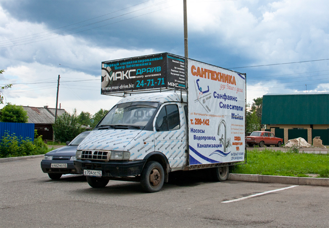 Выше уже приводились виды пленки, которые нами используются в работе. При этом необходимо особо отметить, что при брендировании мобильных билбордов в Лабинске мы применяем два вида оклейки: