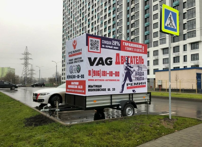 Приводим примеры монтажа рекламы на мобильных билбордах:
