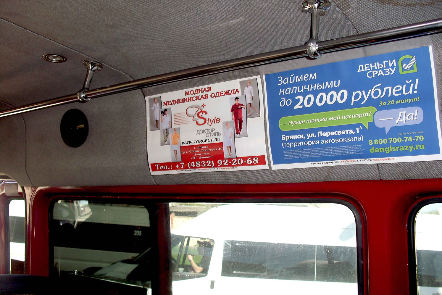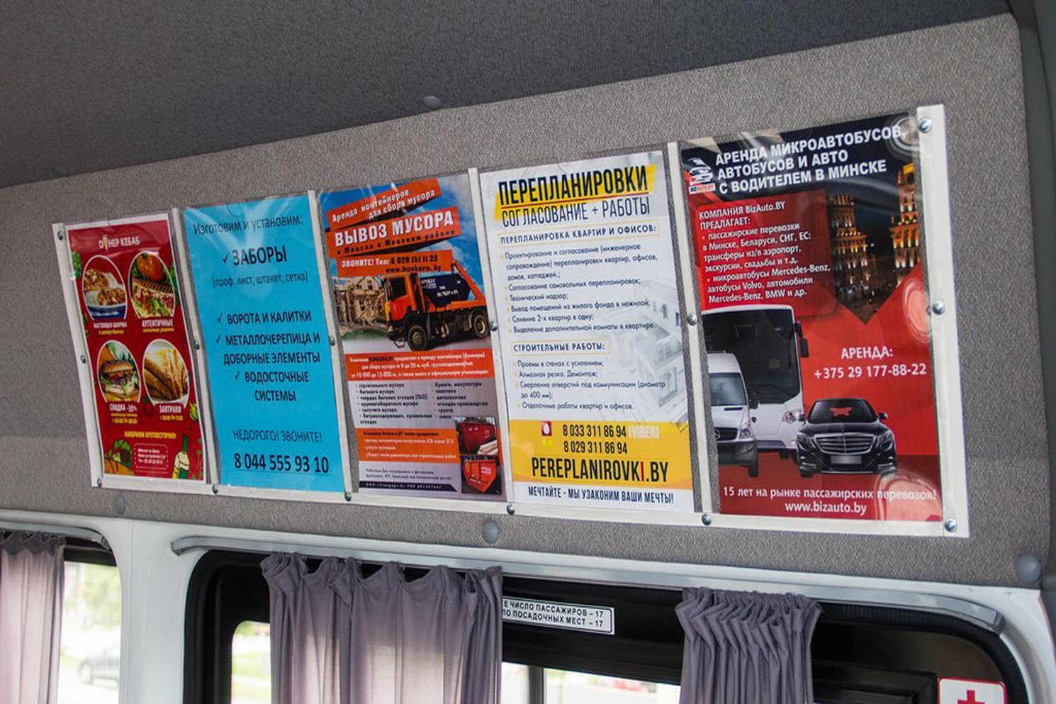 Рекламные стикеры в маршрутке на фото выше
