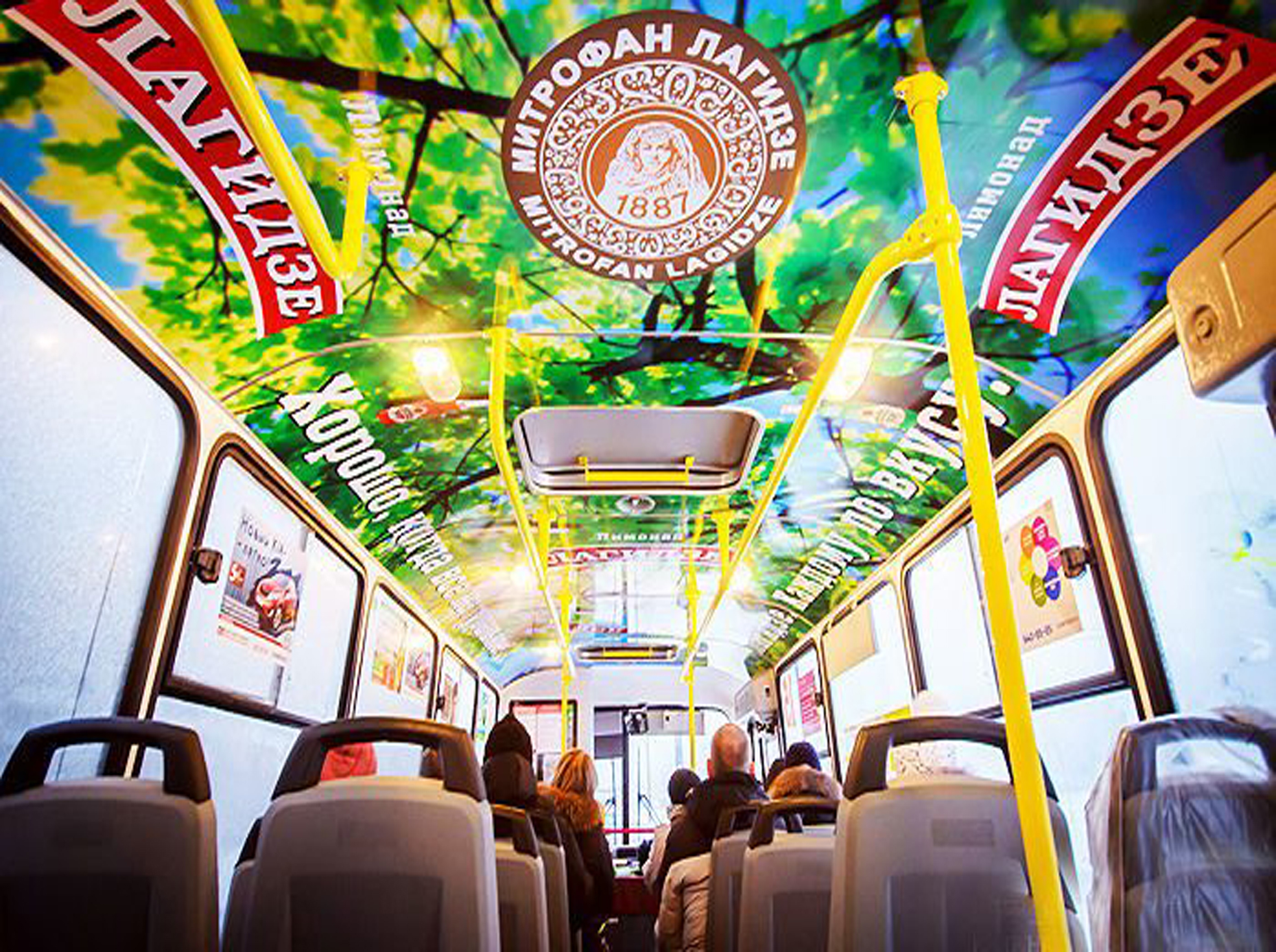 Брендирование салона автобуса на фото выше