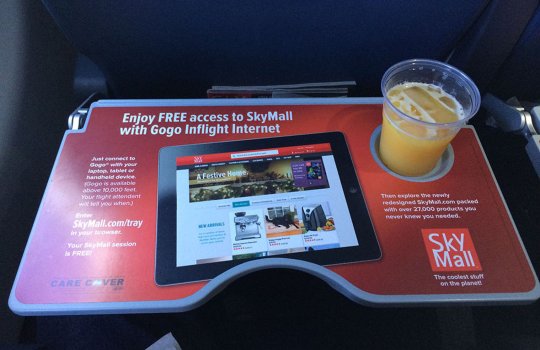 Реклама на откидных столиках в самолетах на фото выше