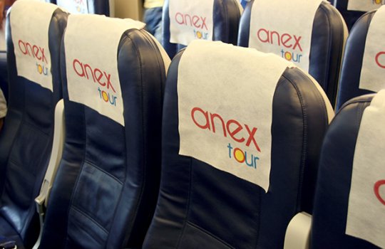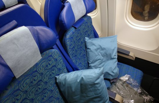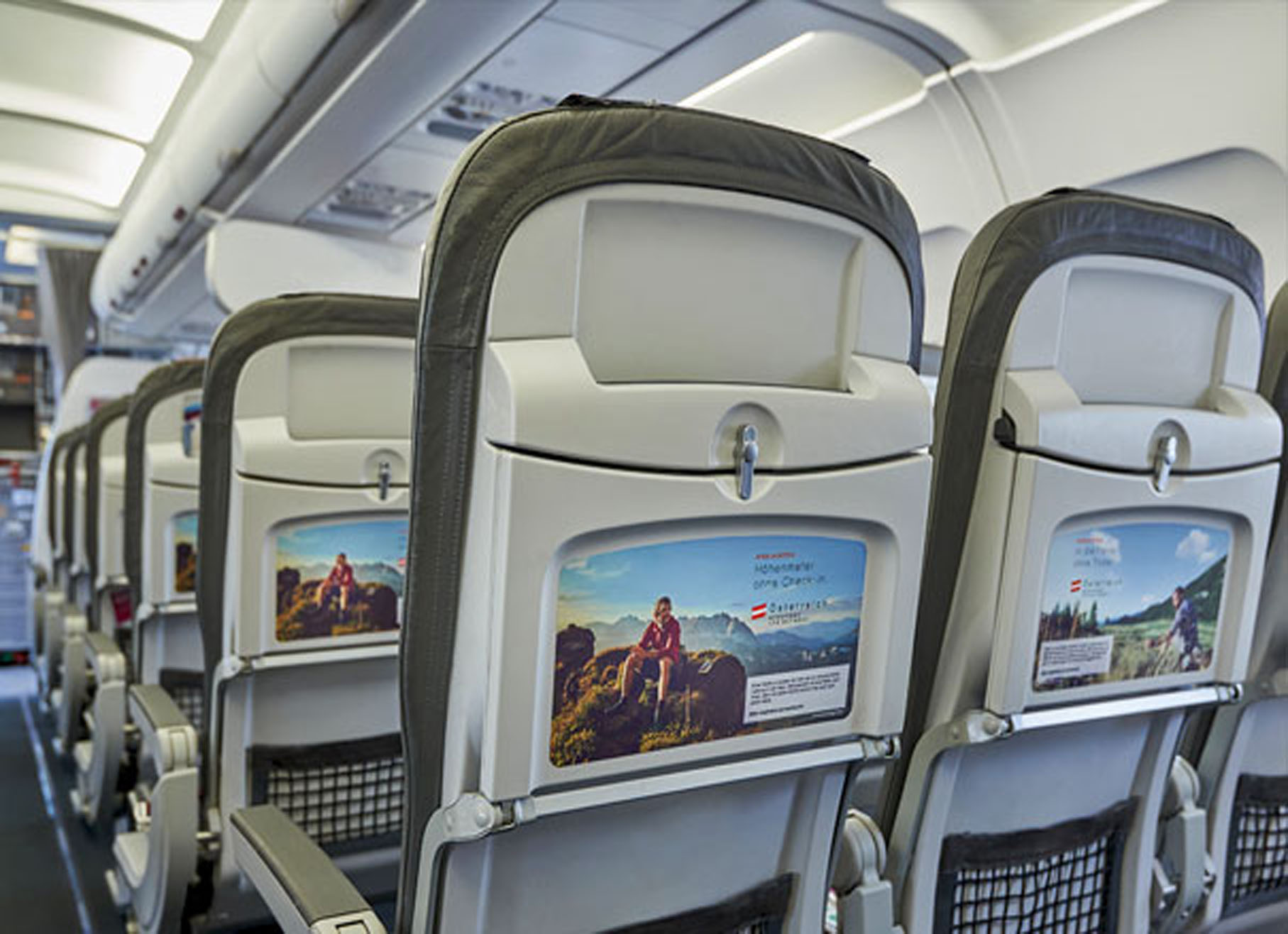 Реклама на спинках кресел в самолетах на фото выше