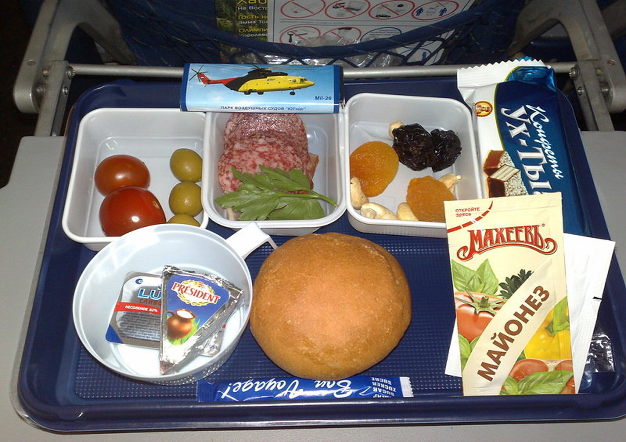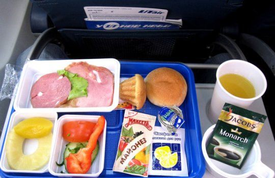 Реклама на ланч-боксах в самолетах на фото выше