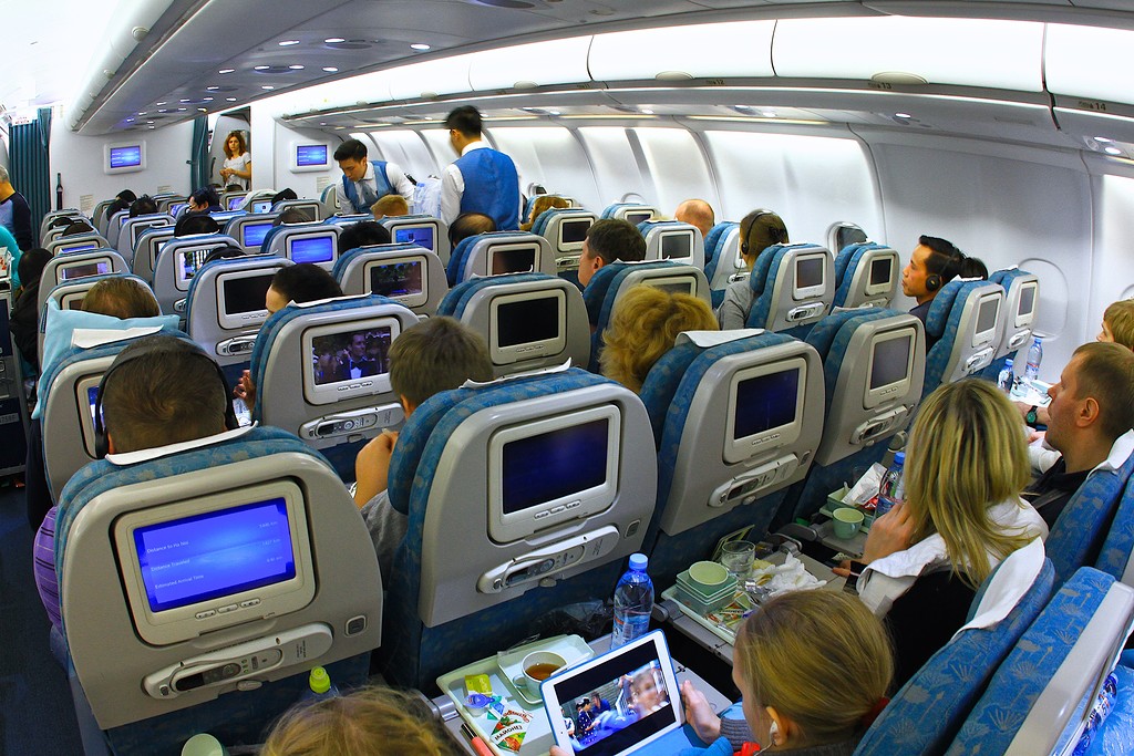 Реклама на мониторах в самолетах на фото выше