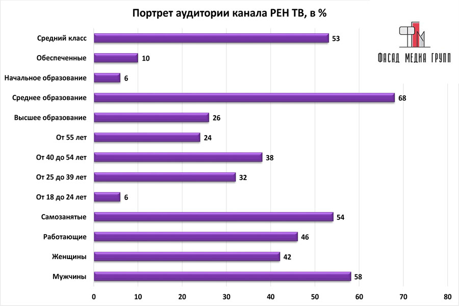 Благодаря качественному, сбалансированному контенту аудитория «РЕН ТВ» многочисленна и разнообразна.