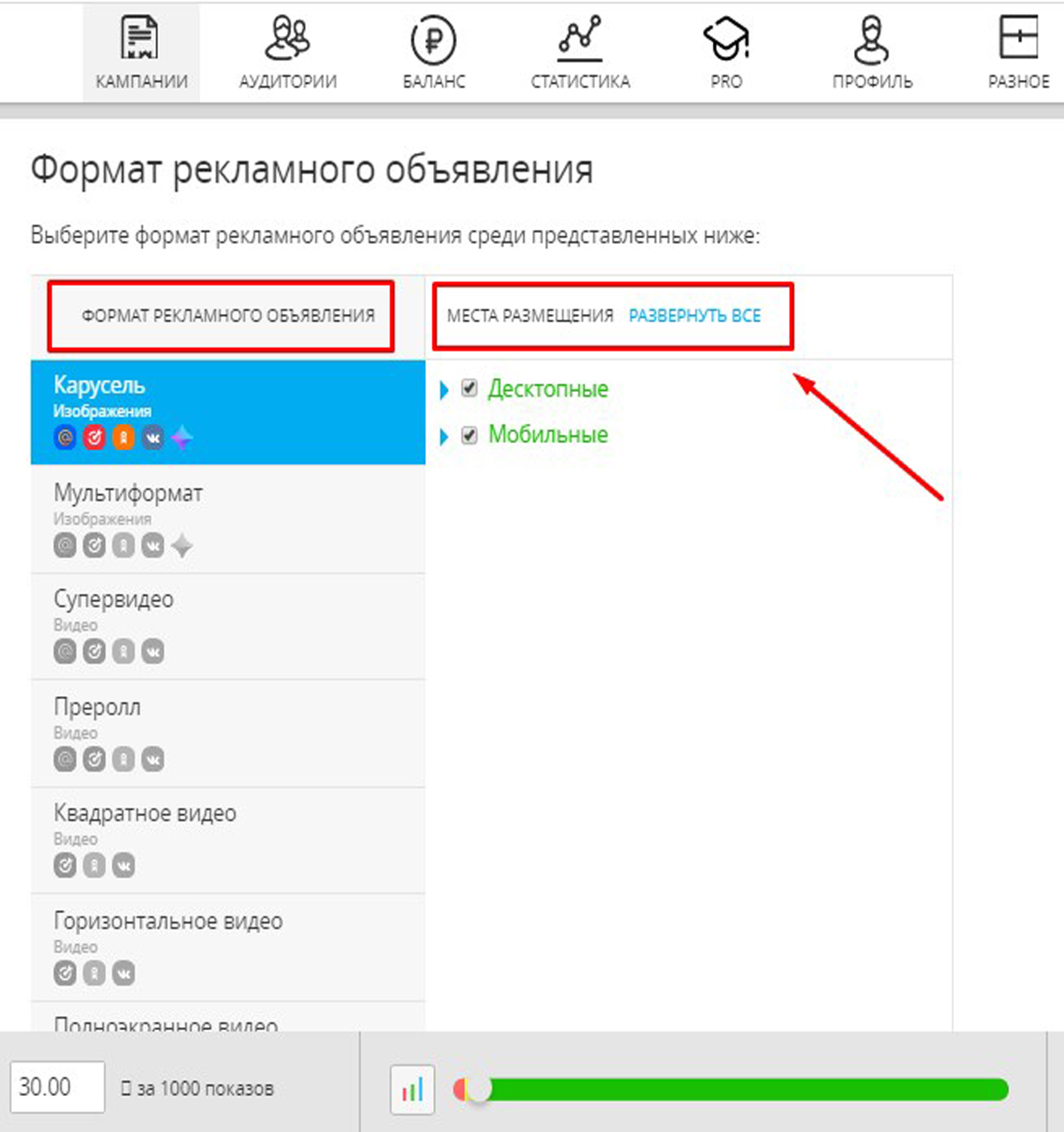 1. В зависимости от площадки размещения рекламы в Mail.ru (Мэйл):