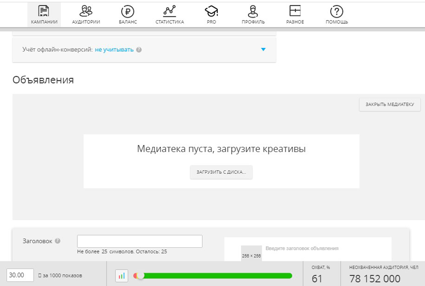 Поставьте цель рекламной кампании