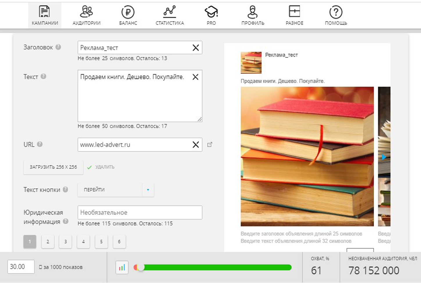 1) введите заголовок объявления. Заголовок рекламного объявления не должен быть более 25 символов;