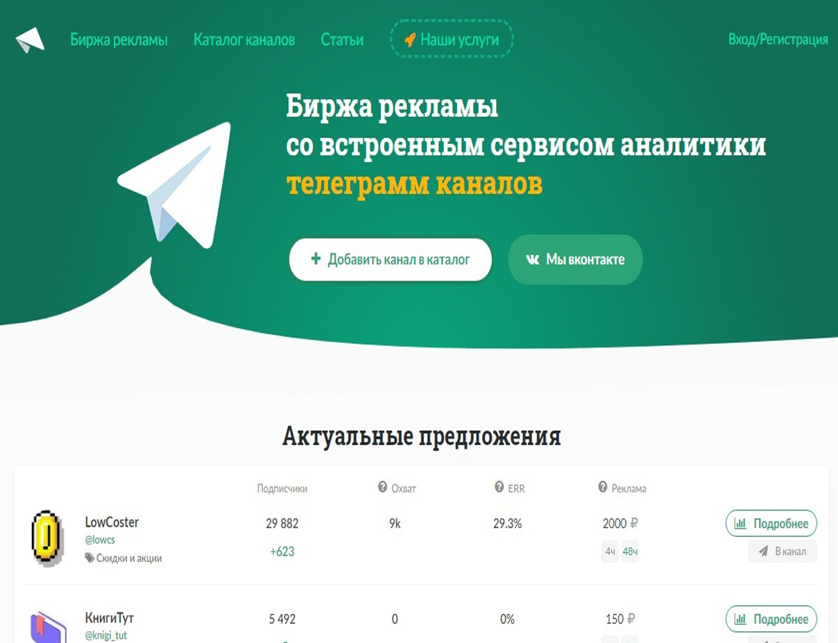 Биржа рекламы в Telegram (Телеграм) представляет собой сайт, на котором представлены различные Телеграм-каналы, отсортированные по критерию: