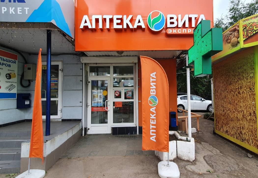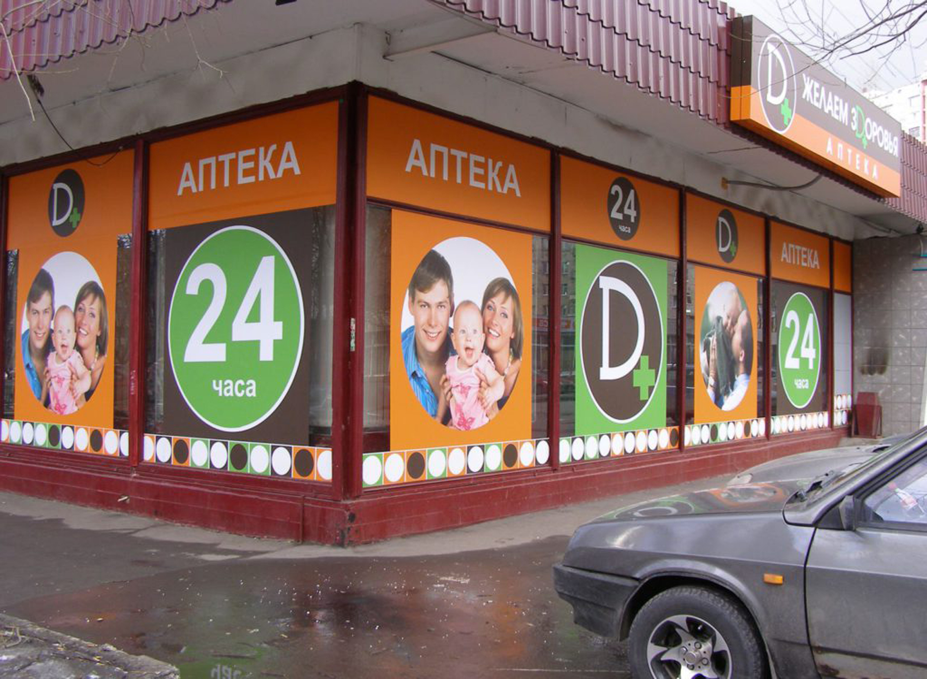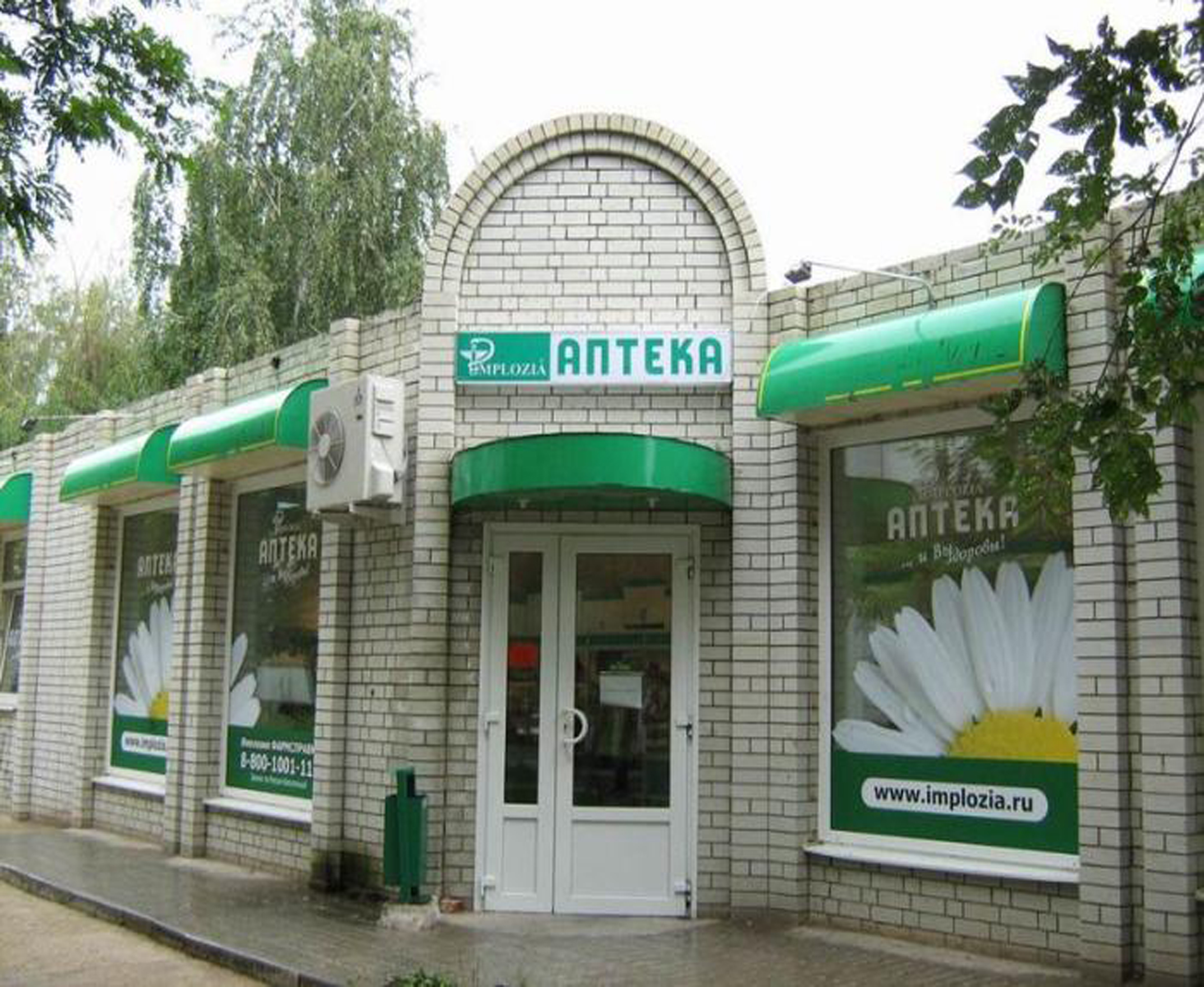 Пример брендирования входа в аптеках: