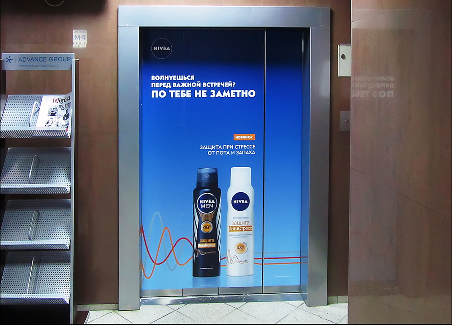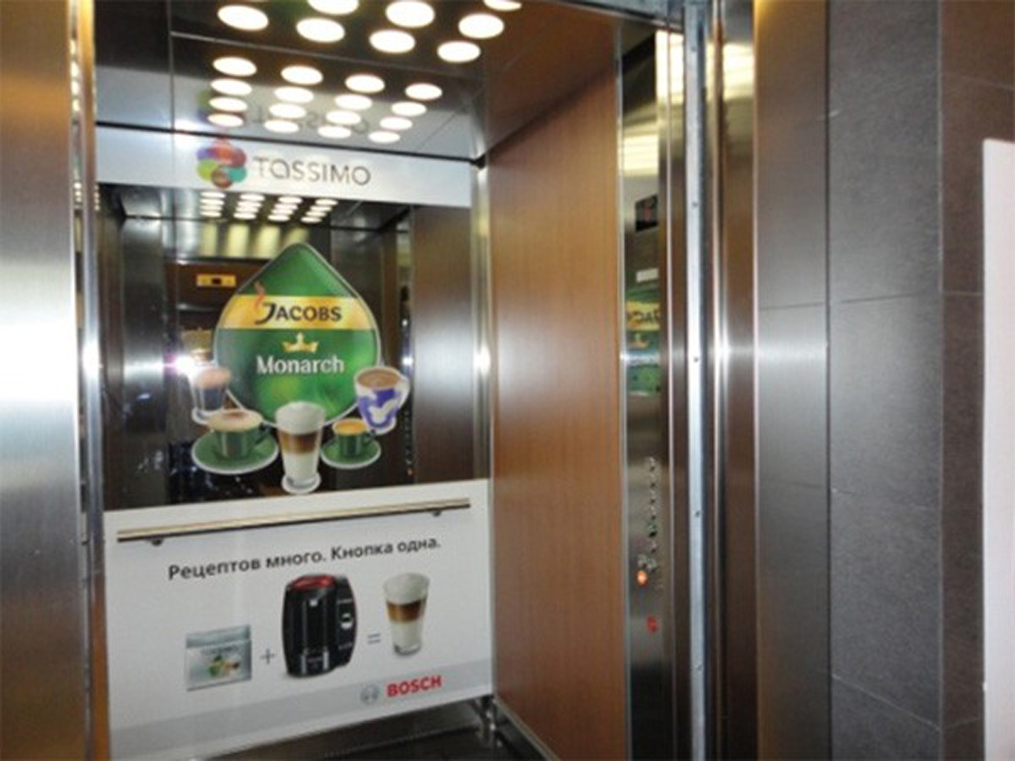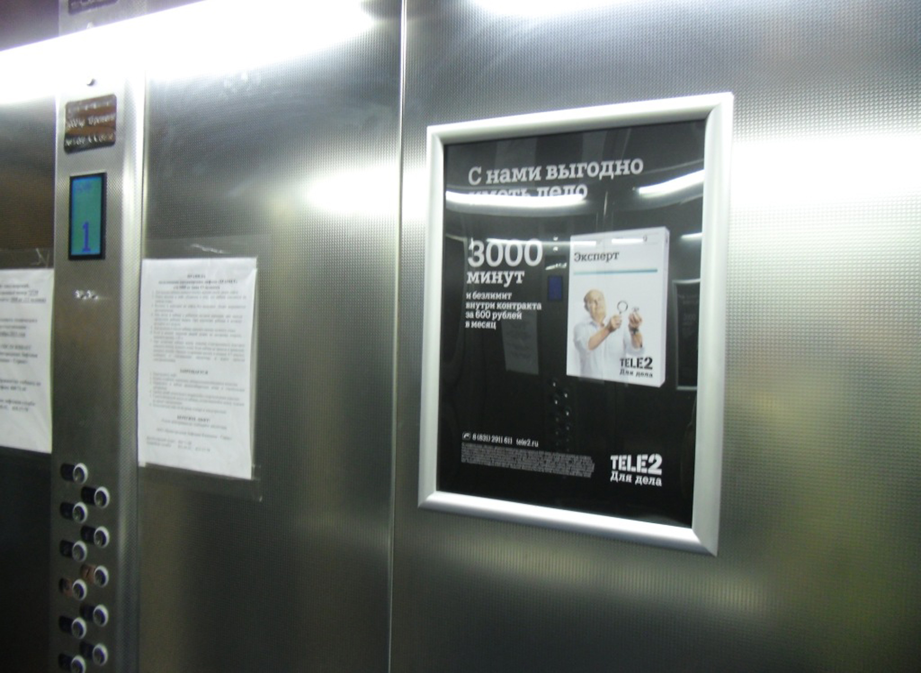 Пример рекламы в лифтах в бизнес-центрах: