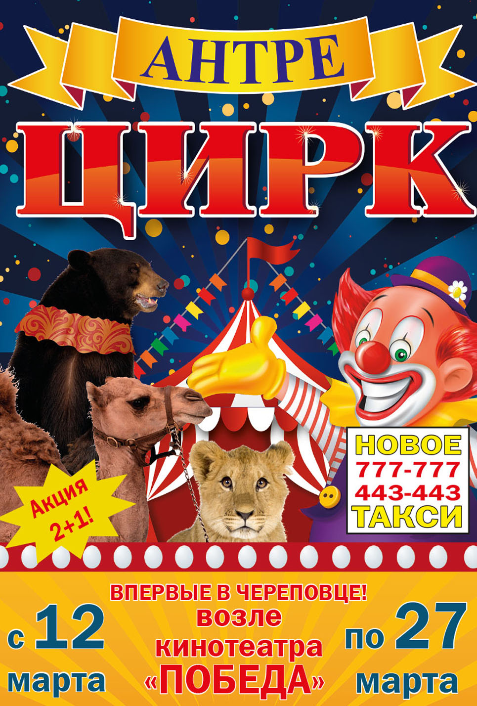 Планируете разместить рекламу в цирке в Лабинске? – обращайтесь по телефону: 8 800 201-23-74 или оставьте заявку на сайте. Размещение рекламы в цирке «под ключ» гарантируем!