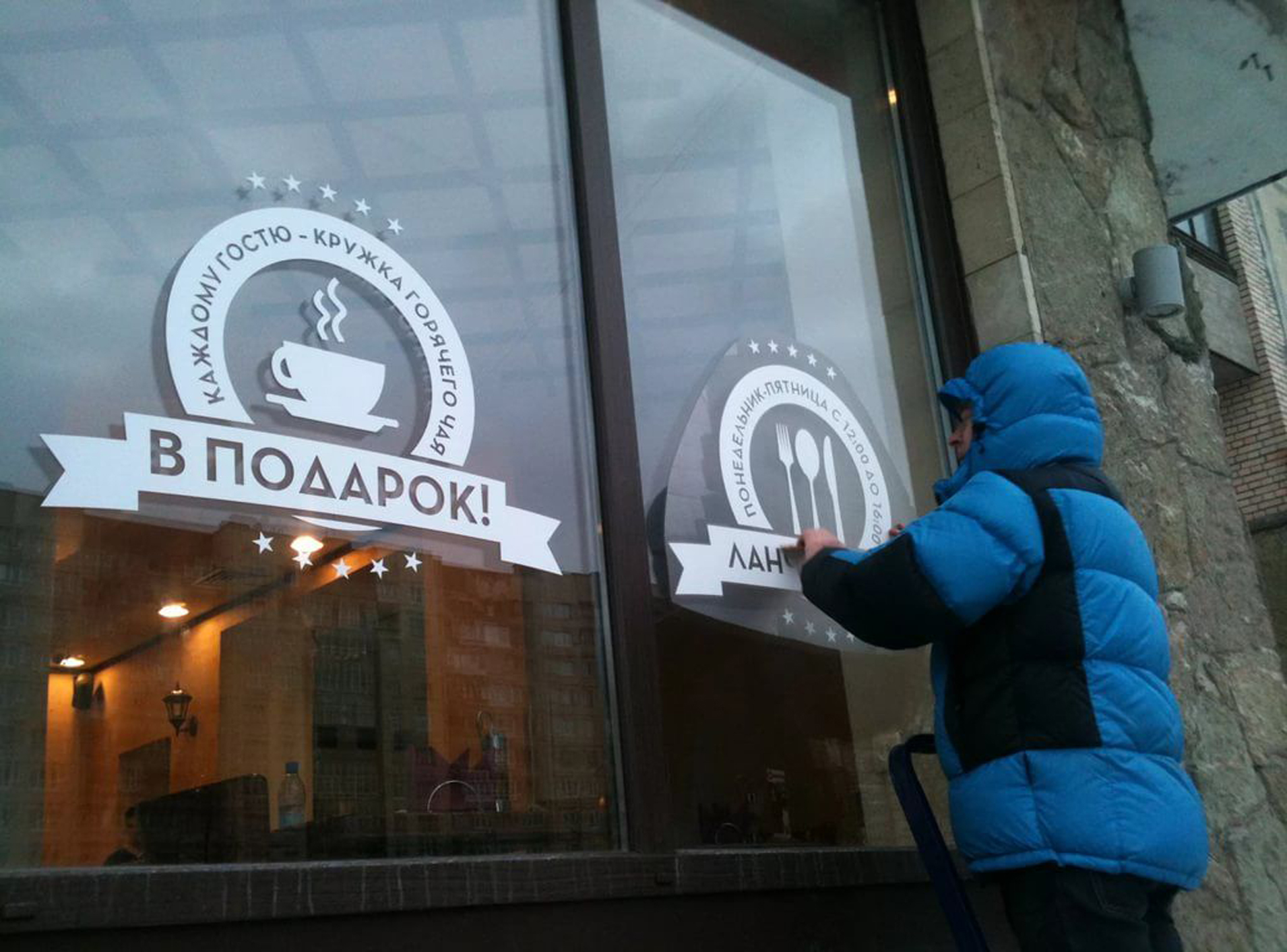 Пример брендирования входа в кафе: