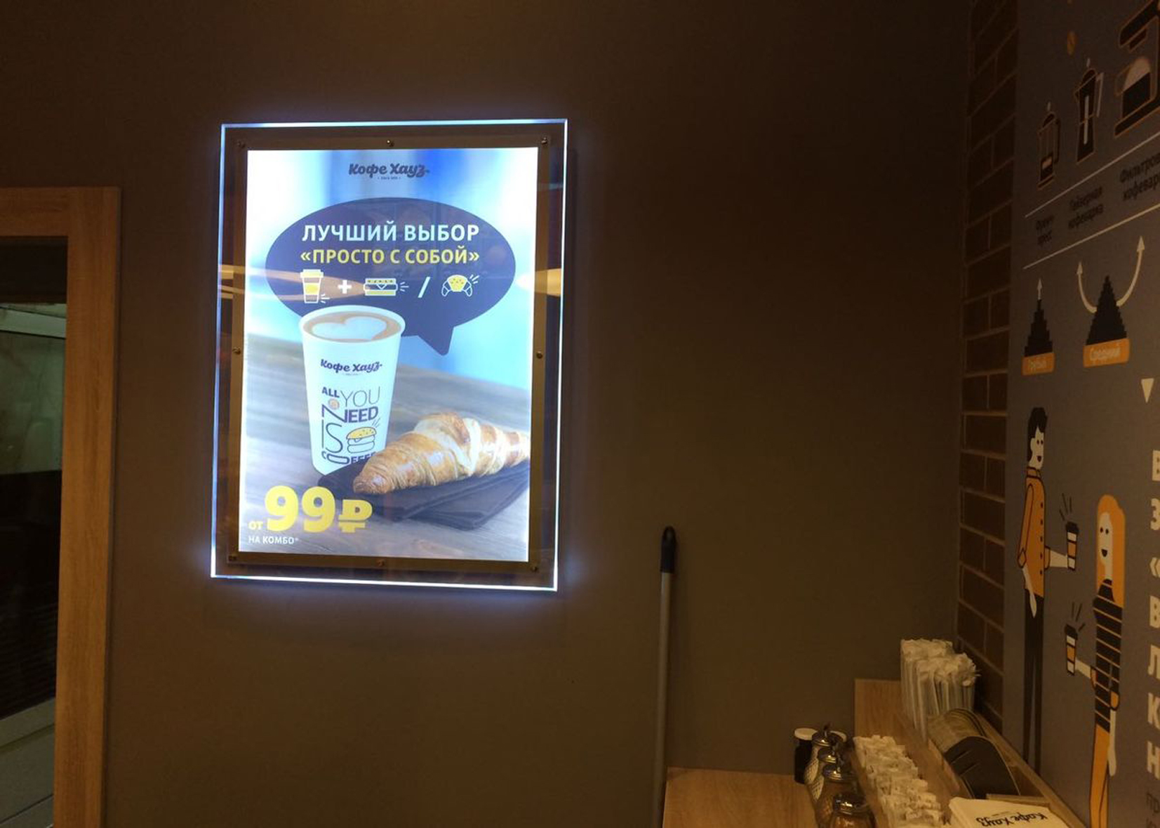 Пример рекламного лайтбокса в кафе: