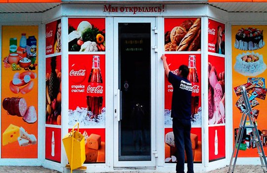 Необходимо особо отметить, что виниловая пленка не деформируется и не выцветает под влиянием ультрафиолета и агрессивных веществ. За счет плотности, высоких клеевых свойств материала реклама, напечатанная на самоклеящейся пленке, идеально подходит для эксплуатации в агрессивной среде в течении длительного периода.
