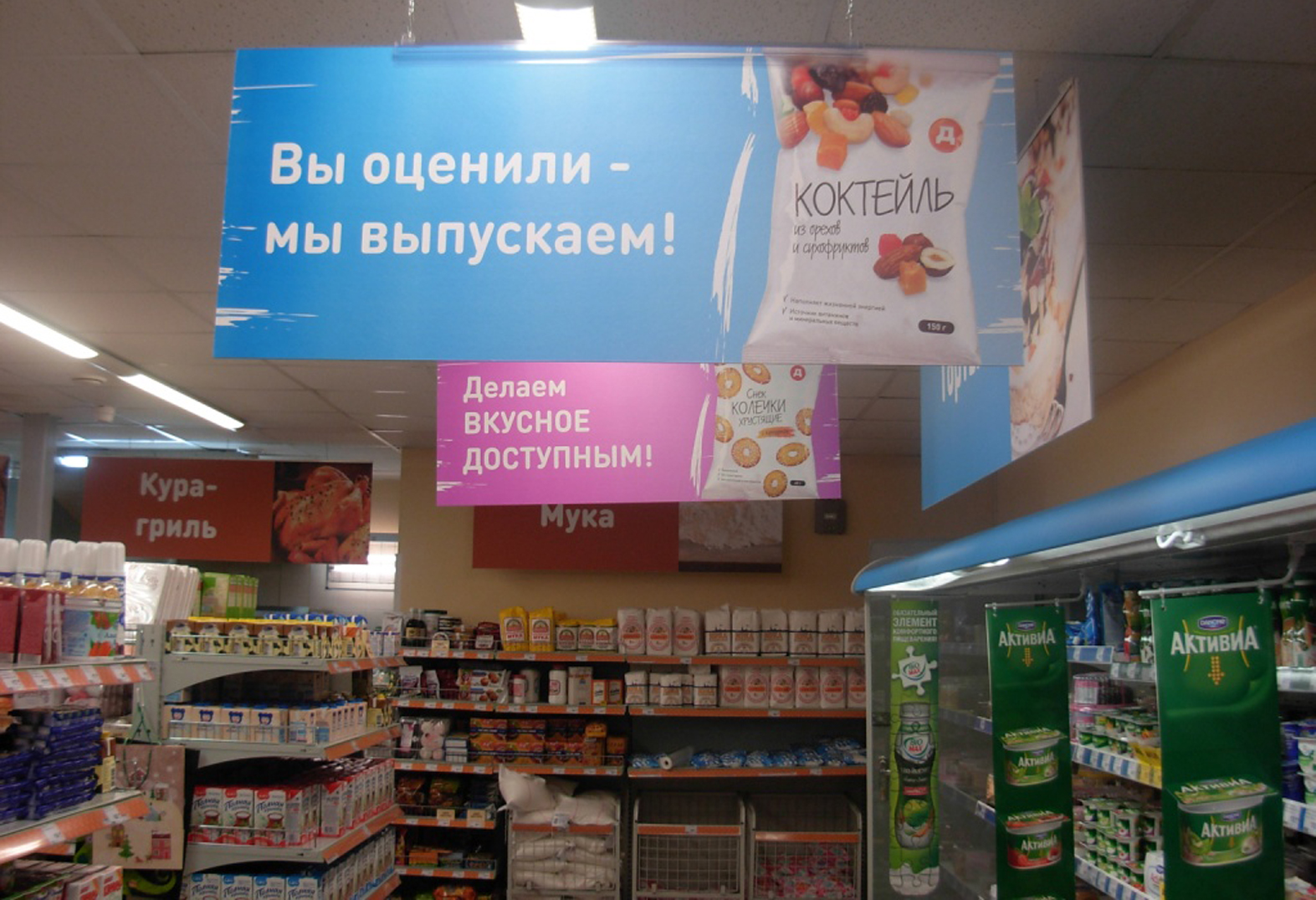 Примеры наших работ при размещении рекламы в супермаркетах представлены ниже: